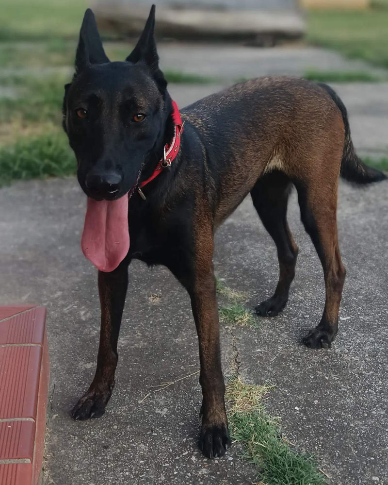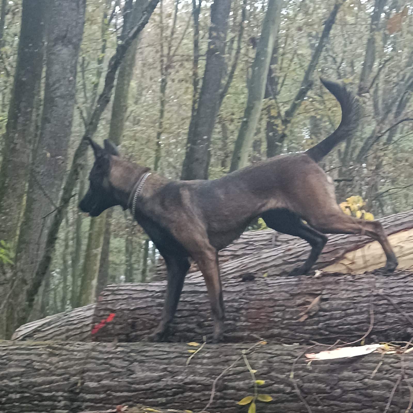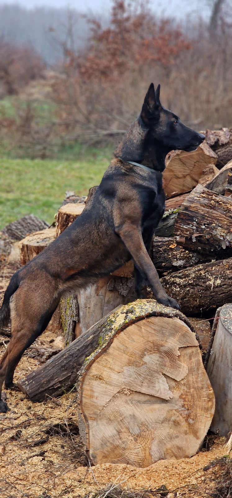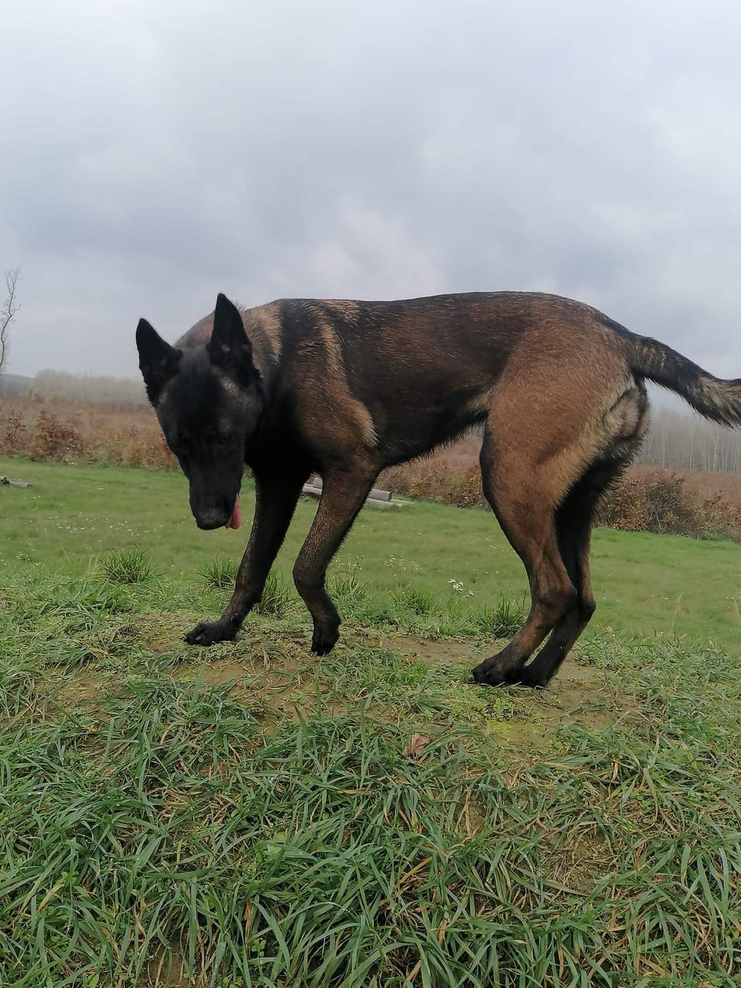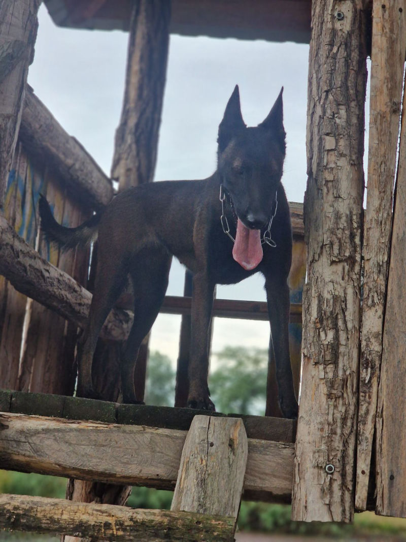 Mlada ženka belgijskog ovčara malinois, fawn boje sa crnom maskom. Potječe od roditelja – otac Grom Legos Dog Team i majka Etna von der Sole Dog. Očeva strana su RING radni psi, a majčina strana IGP sportski psi koji su bili sudionici FMBB-a. Here je ženka krupnije građe u pripremi za IGP sportove.